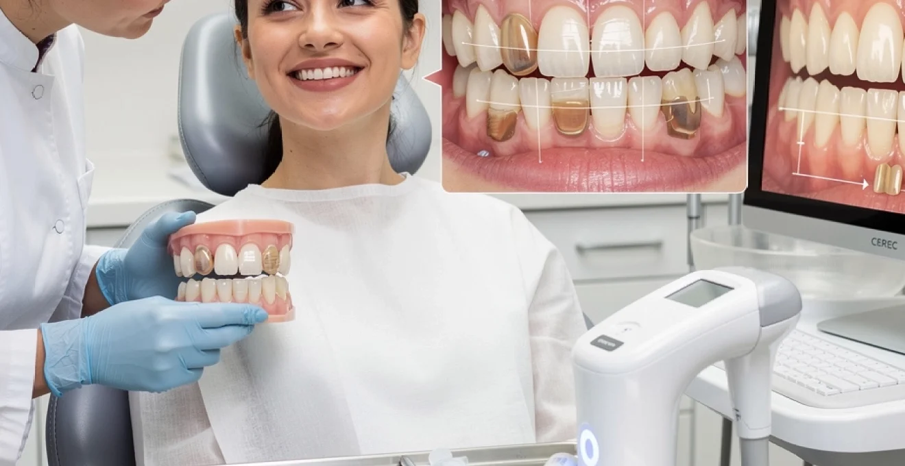 Il est toutefois essentiel d’établir un diagnostic précis avant de se lancer dans un traitement par facettes pour dyschromies sévères. Dans certains cas extrêmes, la teinte sous-jacente peut nécessiter une combinaison de traitements (blanchiment interne/externe, restauration partielle, facette plus épaisse). Votre dentiste vous expliquera les limites réalistes du masquage et vous proposera éventuellement un essai sur une ou deux dents avant de généraliser à l’ensemble du sourire.