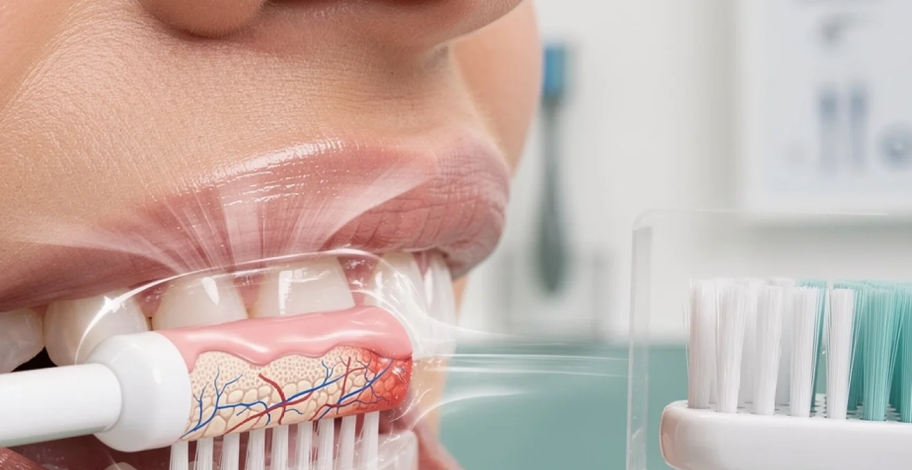 Les lésions gingivales liées au brossage sont le résultat d’un déséquilibre entre la force mécanique appliquée et la capacité d’adaptation des tissus parodontaux. Lorsque vous utilisez une brosse à dents dure ou medium avec des mouvements horizontaux vigoureux, la pression répétée au niveau du sillon gingival entraîne une compression et un cisaillement des fibres conjonctives sous-jacentes. À court terme, cela se manifeste par des éraflures superficielles, des douleurs au brossage et des saignements.