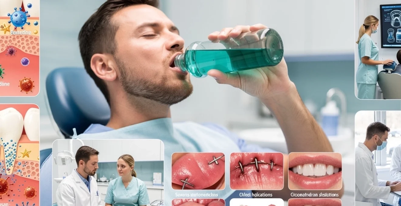 Après une chirurgie parodontale, une extraction complexe ou la pose d’implants, les tissus buccaux présentent des surfaces de plaie et des sutures particulièrement vulnérables à la colonisation bactérienne. Dans les premiers jours, le brossage mécanique peut être difficile, voire contre-indiqué sur la zone opérée. Le bain de bouche antiseptique, en particulier à base de chlorhexidine, occupe alors une place centrale pour maintenir une antisepsie locale en attendant la reprise progressive de l’hygiène mécanique. Les protocoles classiques recommandent souvent une solution à 0,12 % ou 0,20 % de chlorhexidine, utilisée deux fois par jour pendant 7 à 10 jours, sous stricte surveillance du chirurgien-dentiste.